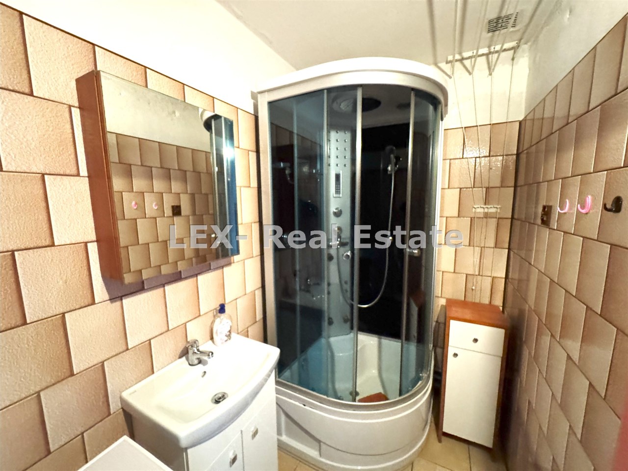 - Łazienka z kabiną prysznicową.
