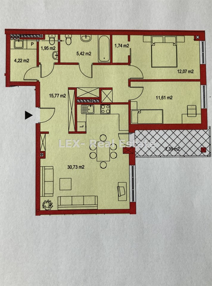 - dużego salonu połączonego z kuchnią i wyjściem na sporej wielkości balkon