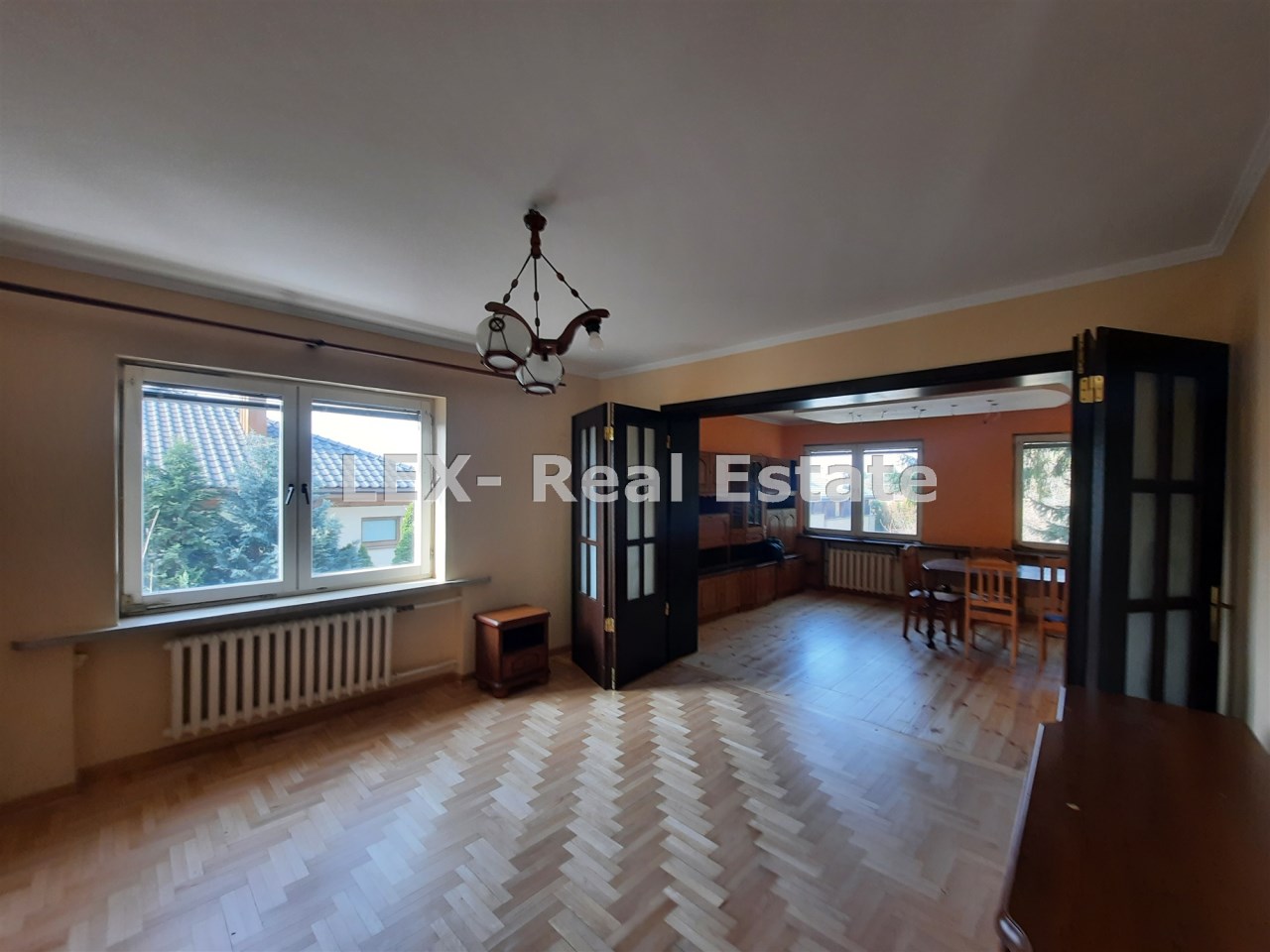 Podłogi drewniane, okna PCV.
